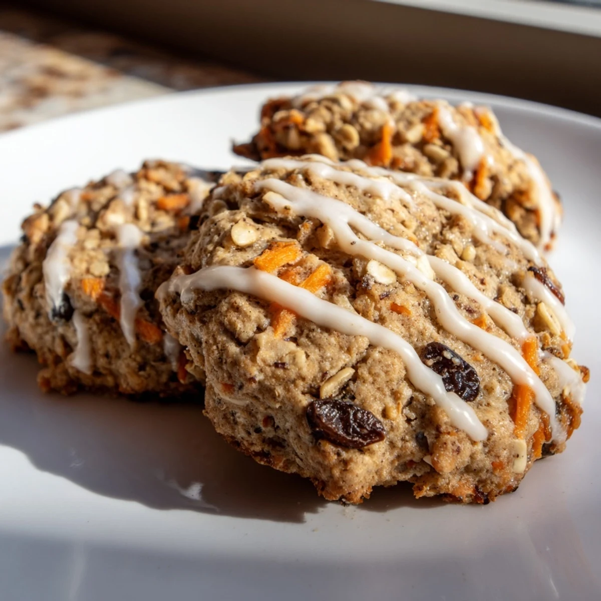These chewy cookies transform classic carrot cake flavors into a portable treat by browning butter for deep nuttiness, then combining it with freshly grated carrots, rolled oats, toasted walnuts, and aromatic cinnamon, nutmeg, and ginger. The brown butter technique adds caramel notes while the optional cream cheese glaze provides tangy sweetness. Chilling the dough ensures extra chewiness, and the quick baking time yields edges that are set with slightly underbaked centers for perfect texture.