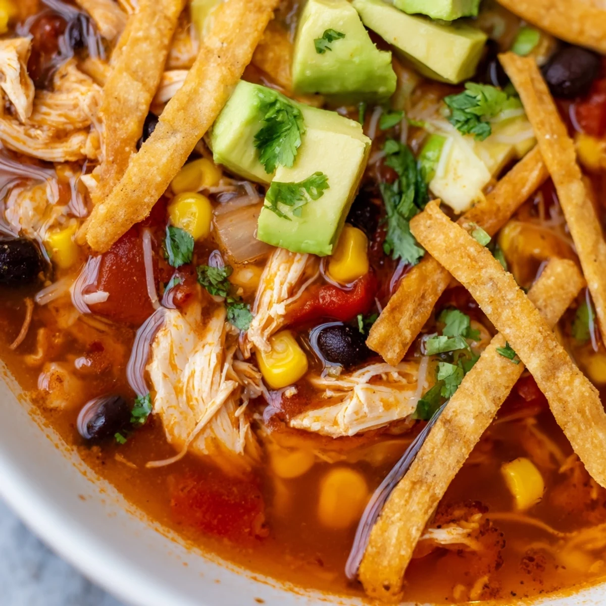 This hearty Mexican-inspired bowl combines succulent shredded chicken with a rich, spiced broth loaded with black beans, sweet corn, and vibrant vegetables. The star element is the oven-baked tortilla strips that add a satisfying crunch to every spoonful. A blend of cumin, chili powder, and smoked paprika gives this soup its signature depth and warmth. Perfect for chilly evenings or when you need something nourishing that feels like a hug in a bowl.
