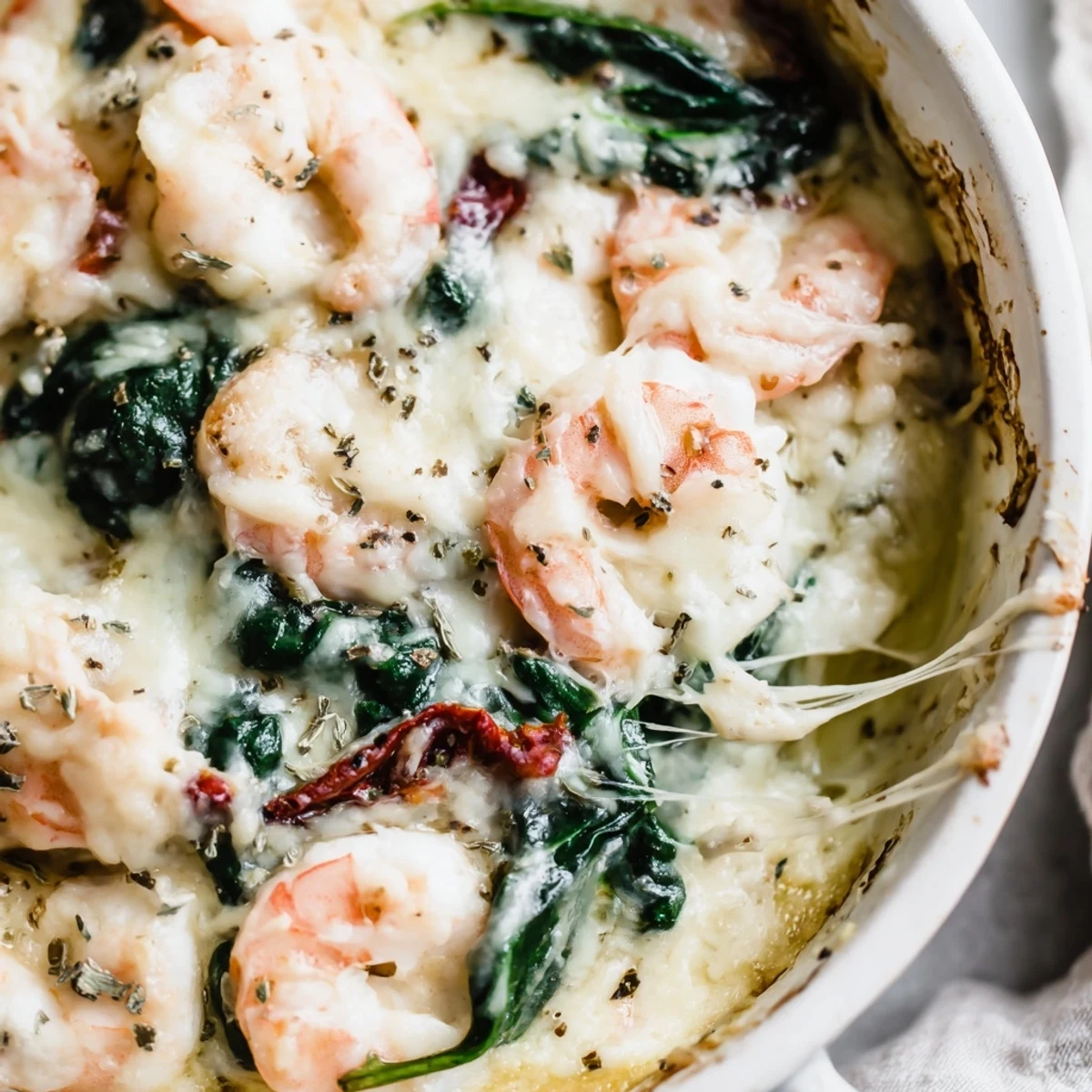This creamy Tuscan-style shrimp bake combines plump shrimp with a rich sauce of sun-dried tomatoes, fresh spinach, and aromatic Italian herbs. The dish comes together in under an hour, making it perfect for busy weeknights when you want something satisfying without the heavy carbs.