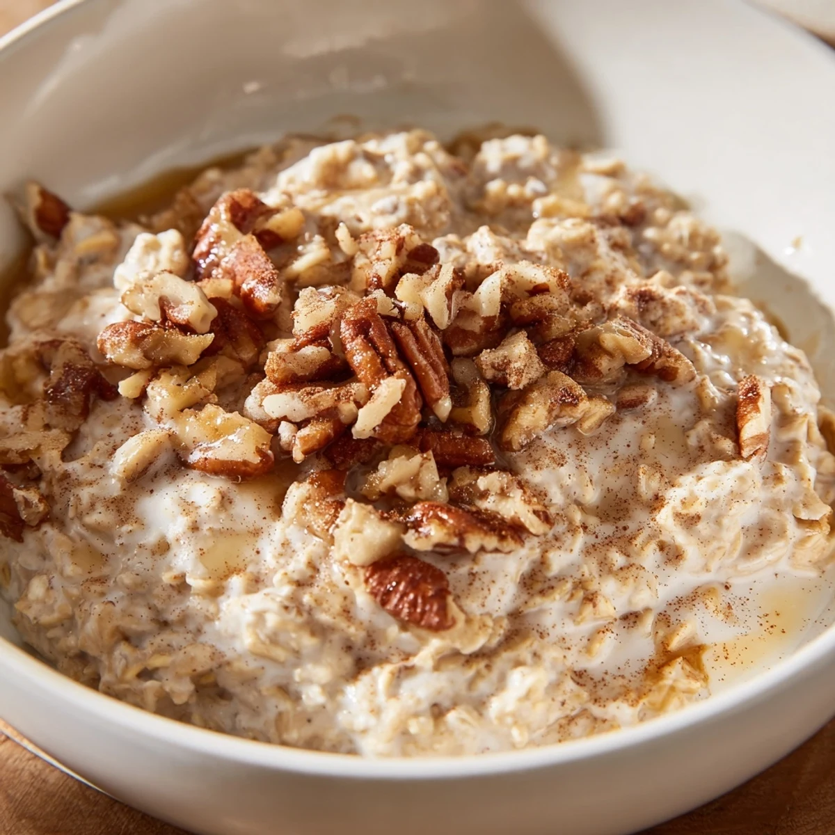 Wake up to a bowl of creamy, comforting oats soaked overnight with pure maple syrup and ground cinnamon. The chopped pecans add delightful crunch while providing healthy fats and protein. This make-ahead breakfast comes together in just 10 minutes and keeps in the refrigerator for up to 5 days, making it perfect for busy weekday mornings.
