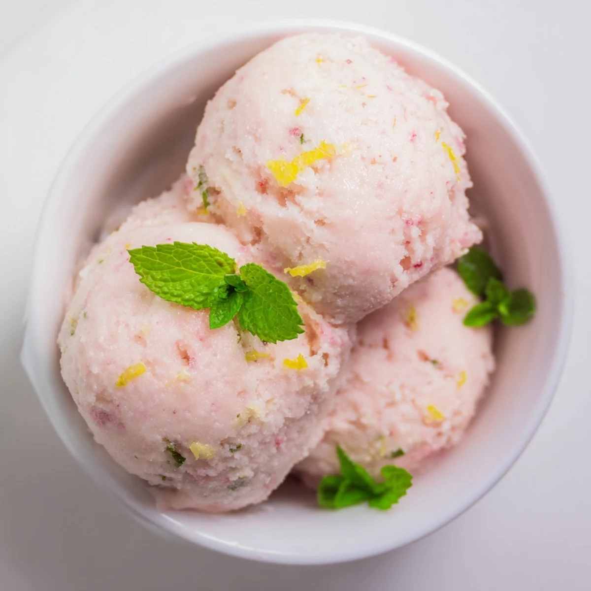 Mint adds a bright, refreshing note that balances the tartness of the citrus and complements the sorbet’s cool texture.